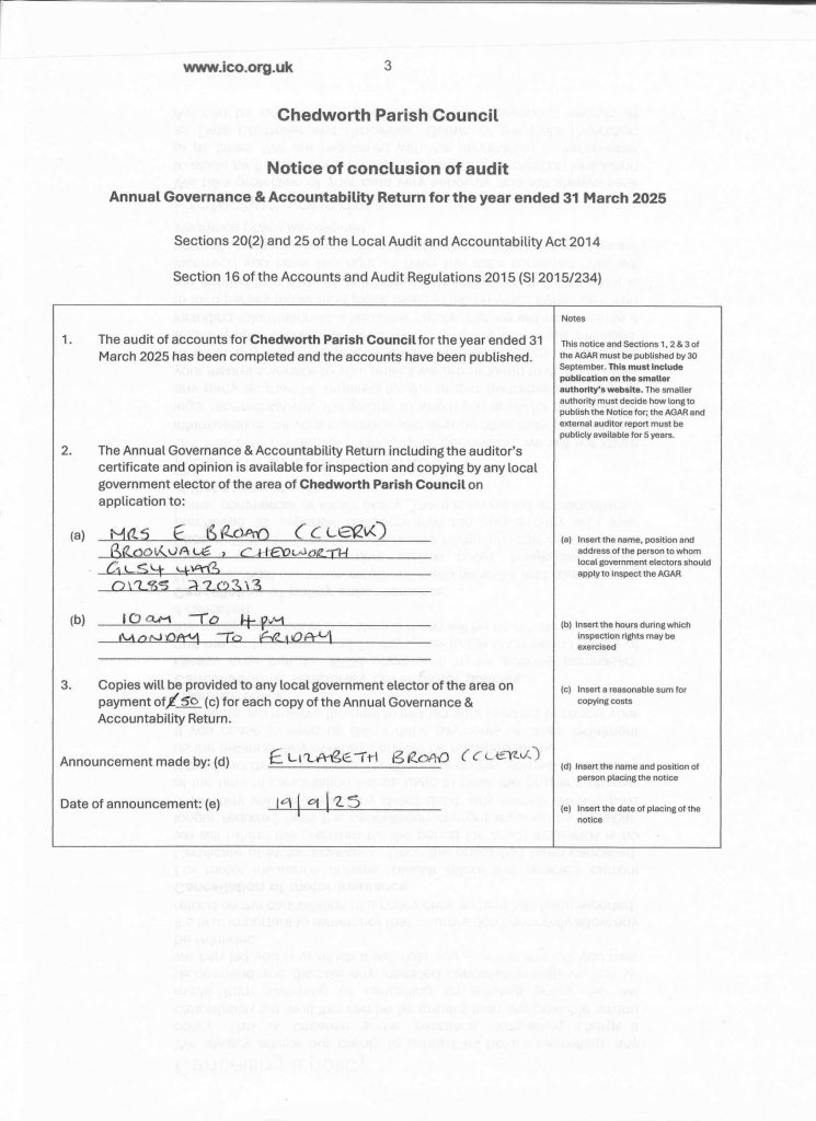 2024/25 Audit 24 – 25 AGAR Section 1 001 24 – 25 AGAR Section 2 001 24 – 25 Audit Internal Audit Report 001 AGAR S3 2024 – 2025Download